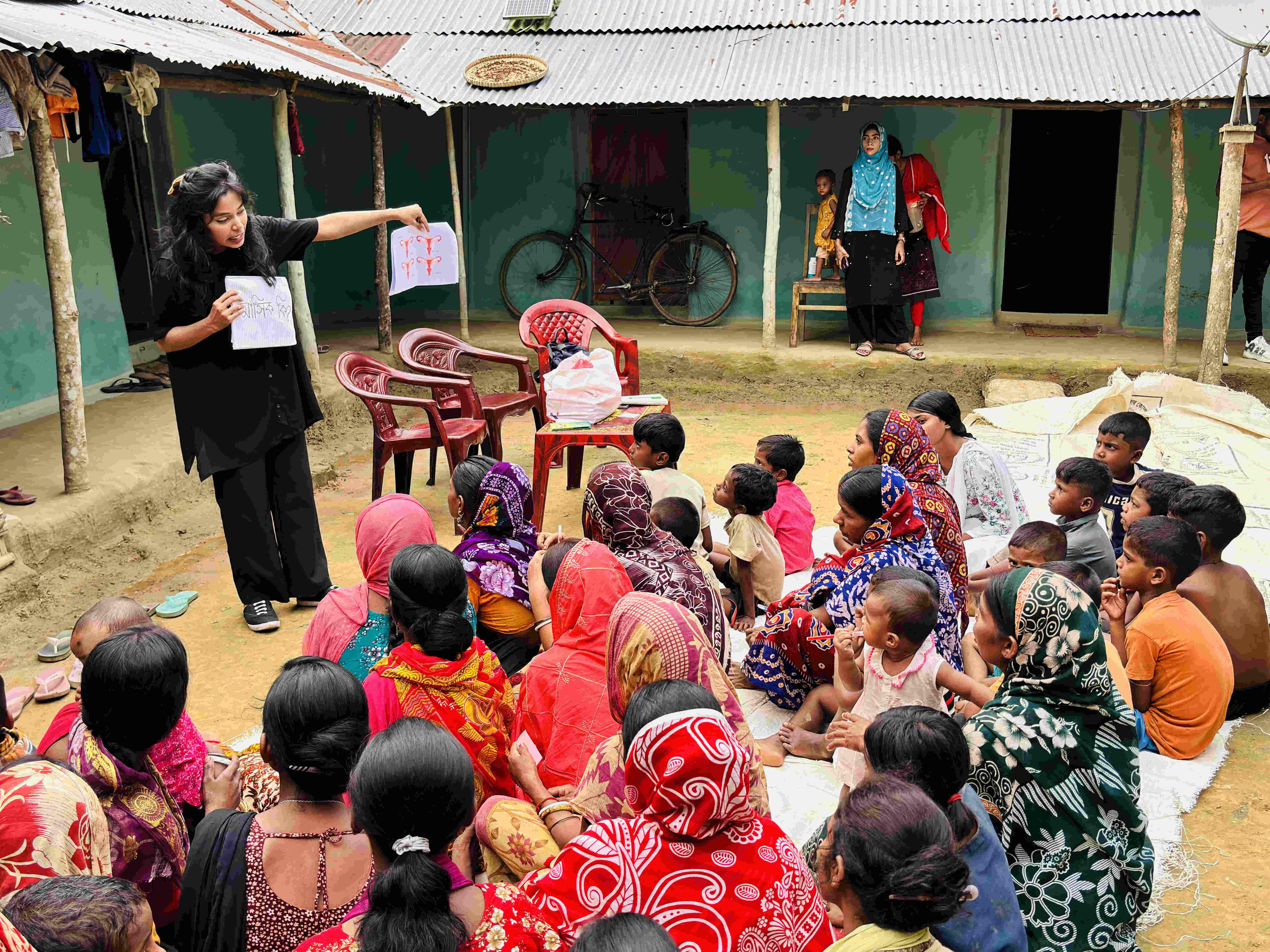 At the foundation of Nirbhoya lies its grassroots awareness model, developed specifically for women and adolescent girls in low-literacy, high-stigma environments such as the tea estates of Sreemangal. Nirbhoya conducts culturally sensitive menstrual and reproductive health sessions that address menstrual hygiene, reproductive tract infections, correct contraceptive use, family planning, and awareness of cervical cancer, topics that are often completely absent from these communities. Sessions are designed interactively using visual aids, storytelling, real-life examples, and open dialogue, allowing women to engage without relying on written materials. To counter stigma, resistance and ensure long term sustainability, Nirbhoya actively involves local youth volunteers and trusted community leaders to help normalize conversations around menstruation and women’s health. These local youth groups also get trained by our expert team to sustain these awareness sessions by themselves in their own communities.