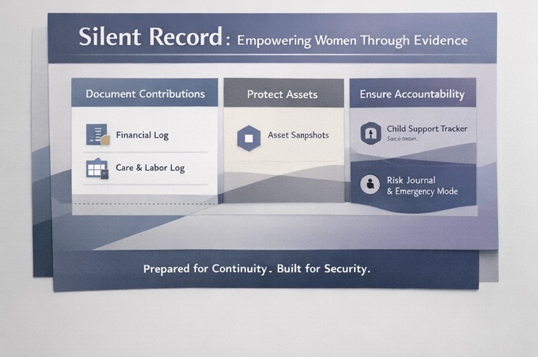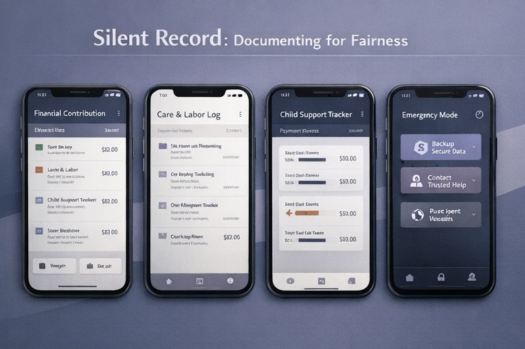Offered in both forms of websites and app, Silent Records enables users to securely record and organize everyday information that is often overlooked but legally significant. Core functions include a Financial Contribution Log documenting shared expenses and investments within the family, and a Household & Care Labor Log, which records unpaid domestic and caregiving work over time. Together, these features transform “invisible” contributions, which means, priceable but unpaid, into tangible and recognizable labor costs.